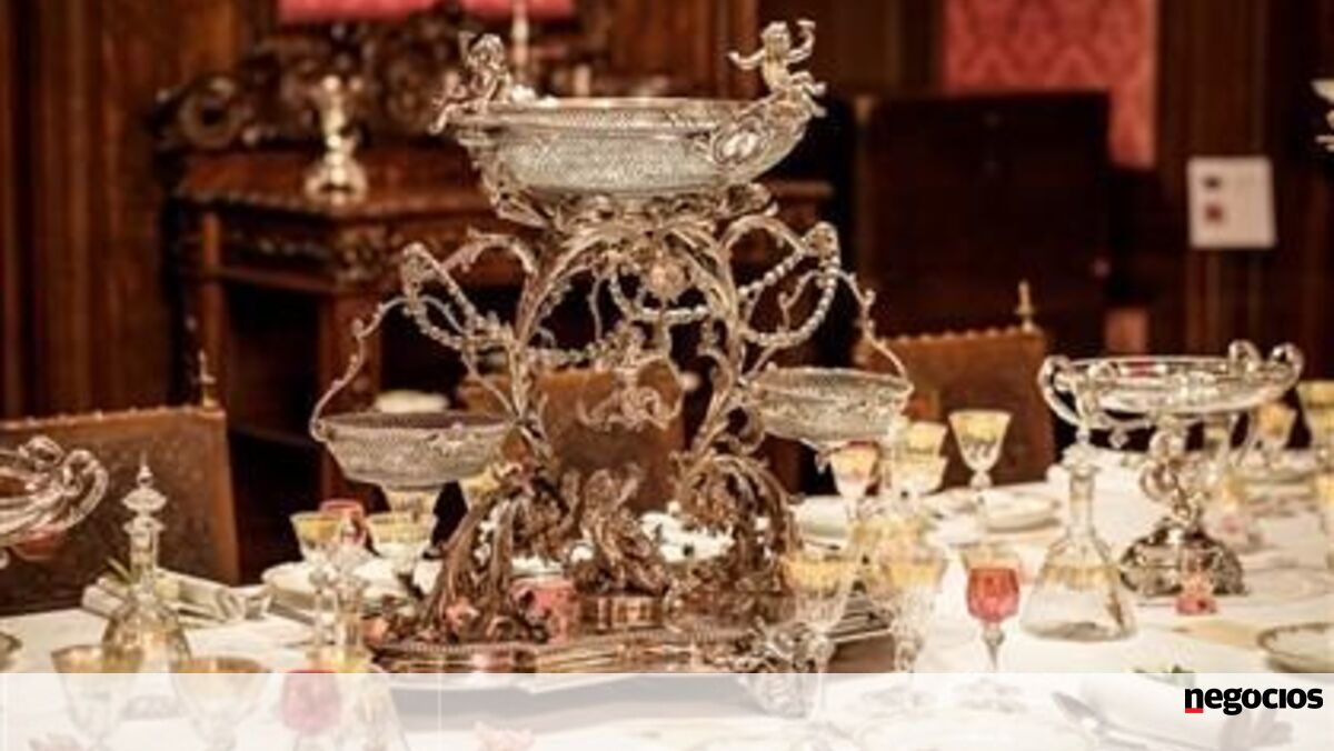 Centro de mesa e respectiva baixela de prata, da casa Veyrat