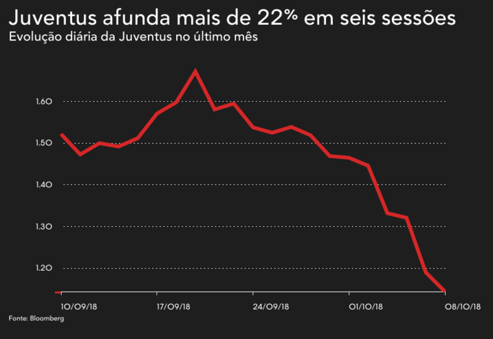 Desde então, a Juventus negociou sempre no vermelho, sendo que já regista oito sessões consecutivas a perder valor.